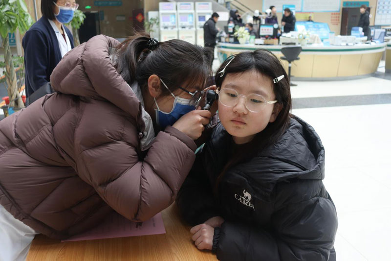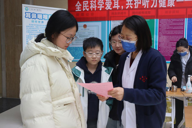 上午9时许,门诊大厅的义诊台前已排起了长队。由耳鼻喉科专家、技术骨干及护理人员组成的医疗团队早早准备就绪,他们携带专业的电耳镜、音叉等设备,热情地为前来咨询的市民进行免费检查。
