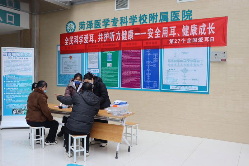 2026年3月2日,在第27个全国“爱耳日”即将到来之际,为普及听力健康知识,增强全社会爱耳护耳意识,菏泽医专附属医院耳鼻喉科在门诊楼一楼大厅举办了以“安全用耳、健康成长”为主题的大型义诊宣教活动,将优质便捷的医疗服务送到了群众身边。