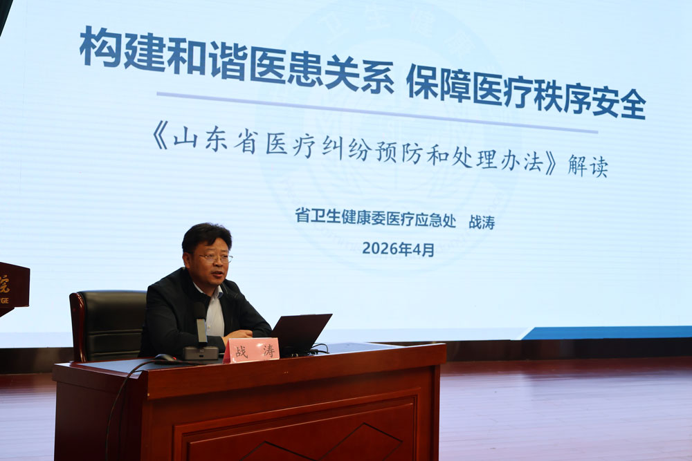 战涛处长围绕医疗纠纷预防和处理,以《山东省医疗纠纷预防和处理办法解读》为题目,用浅显易懂的语言把山东省医疗纠纷预防和处理办法进行了解读。战处长解读得非常透彻,精准到位,为医院预防和处理医疗纠纷指明了方向,解决了疑惑,具有极强的现实意义。