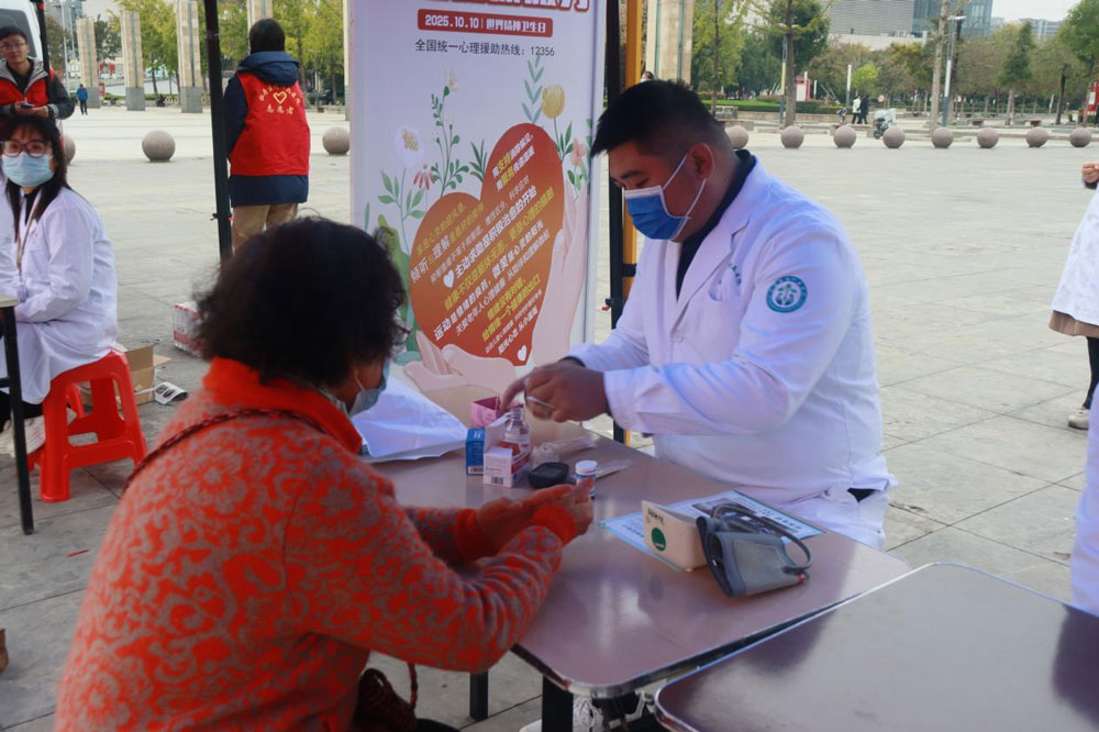 活动现场,医务人员为群众免费测量血压、血糖,通过设置专业咨询台、悬挂醒目宣传横幅、发放精心编制的健康教育资料等多种形式,针对当前公众普遍关注的常见心理问题早期识别、日常情绪科学调节、睡眠障碍有效改善等热点话题,进行了耐心、细致地解答。