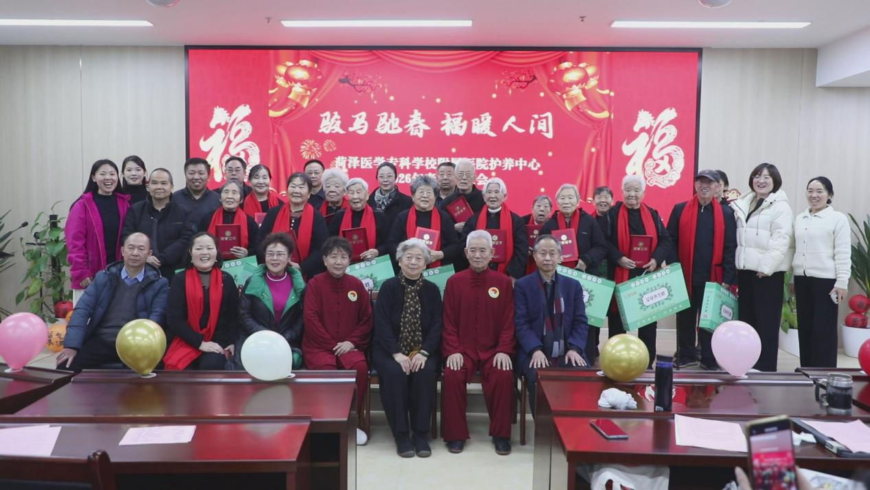 骏马驰春,福暖人间。2月3日下午,菏泽医专附属医院护养中心迎新春联欢会在五号楼会议室隆重举行。
