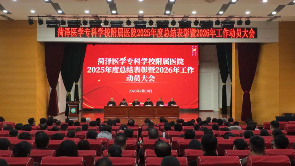 2月10日,菏泽医专附属医院隆重召开2025年度总结表彰暨2026年度工作动员大会。干部职工齐聚一堂,回首往昔、总结成绩,表彰先进、树立标杆,激励全院工作人员在医院高质量发展新征程上再立新功、再创佳绩。党委书记宋恒国及其他班子成员、全院干部职工参加会议。会议由党委副书记王炜振主持。