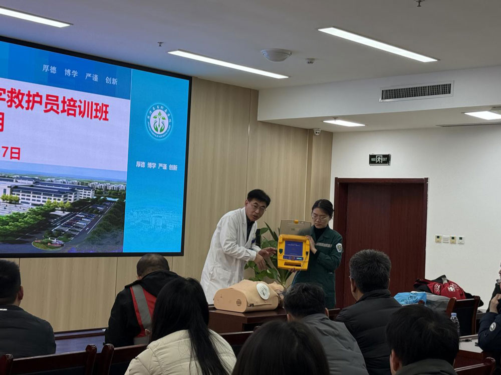 海辰储能作为我市引进的大型新能源企业,始终将安全生产和员工健康素养放在重要位置,企业文化氛围浓厚,员工学习积极性高涨。培训中,菏泽医专附属医院急诊科的专家团队充分发挥专业优势,结合企业生产生活实际,精心设计了课程内容。培训不仅涵盖了红十字运动基本知识、日常生活工作中常见的急救小常识,还针对新能源行业特点,重点讲解了用电安全知识,以及心肺复苏(CPR)及自动体外除颤器(AED)的使用、气道异物梗阻急救、创伤止血包扎等核心急救技能。