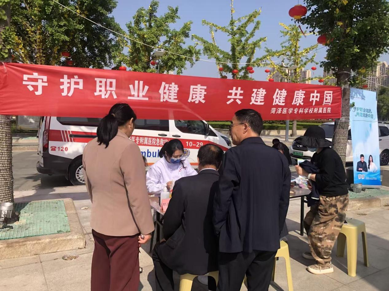 2026年4月25日—5月1日是全国第24个《职业病防治法》宣传周,今年活动主题为“守护职业健康 共建健康中国”。为深入落实职业病防治责任,切实守护广大劳动者健康权益,4月25日上午,菏泽医学专科学校附属医院在菏泽大剧院广场,开展了主题宣传及公益义诊活动,将专业医疗服务与科普知识送到群众身边。