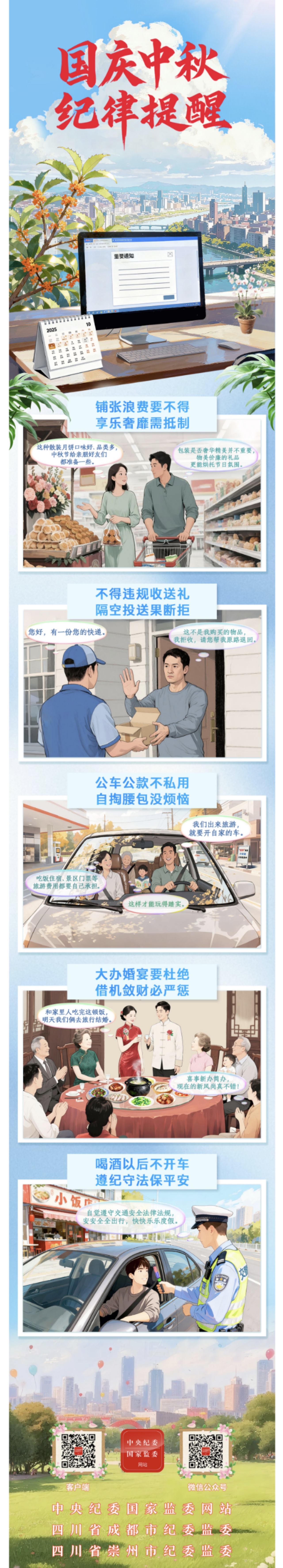 中央纪委办公厅印发《关于国庆中秋期间严格落实中央八项规定精神、从严纠治“四风”的通知》